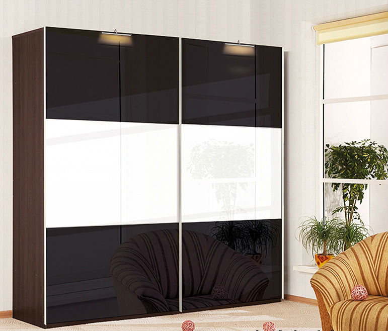 Корпусный шкаф-купе комбинированной расцветки с одним зеркалом. Ширина 112 см.