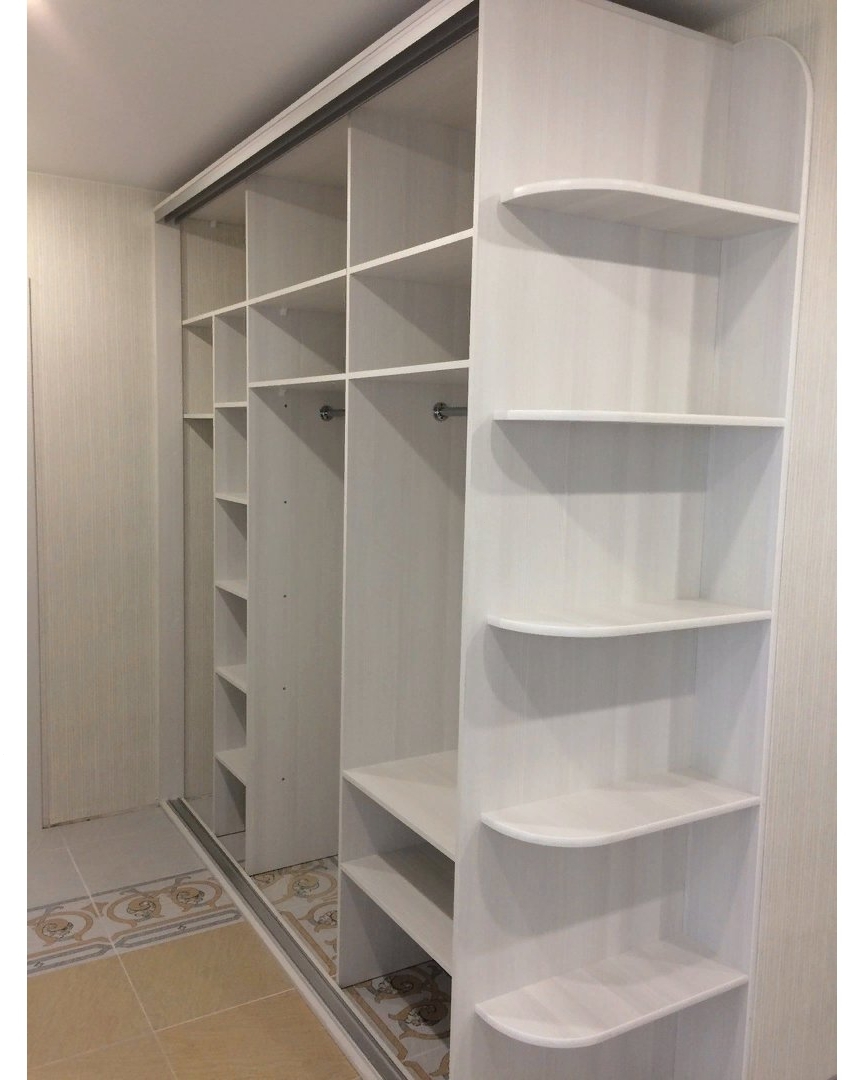 Двухдверный шкаф-купе без зеркал с полками слева. Ширина 152 см.