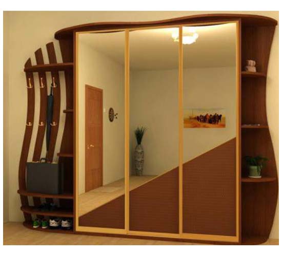 Благодаря наличию открытых вешалок для верхней одежды, ниш для обуви и головных уборов шкаф-купе отлично подойдет для прихожей комнаты. Каркас конструкции изготовлен из высококачественной ДСП.