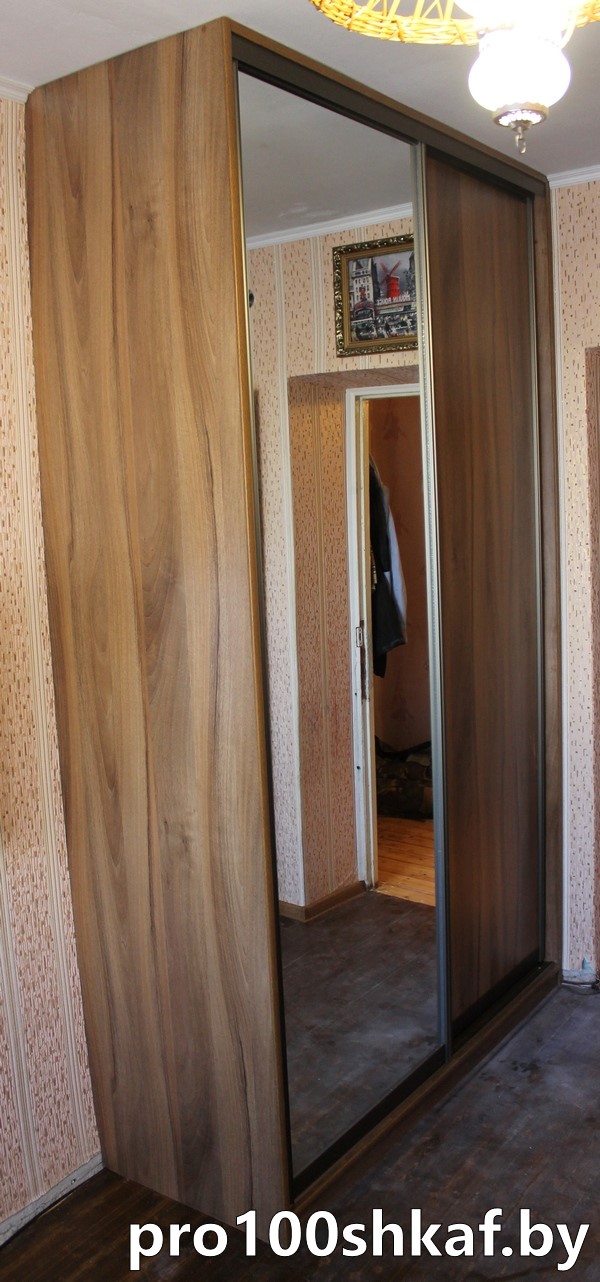 Шкаф-купе в прихожую в цвете орех с зеркалом