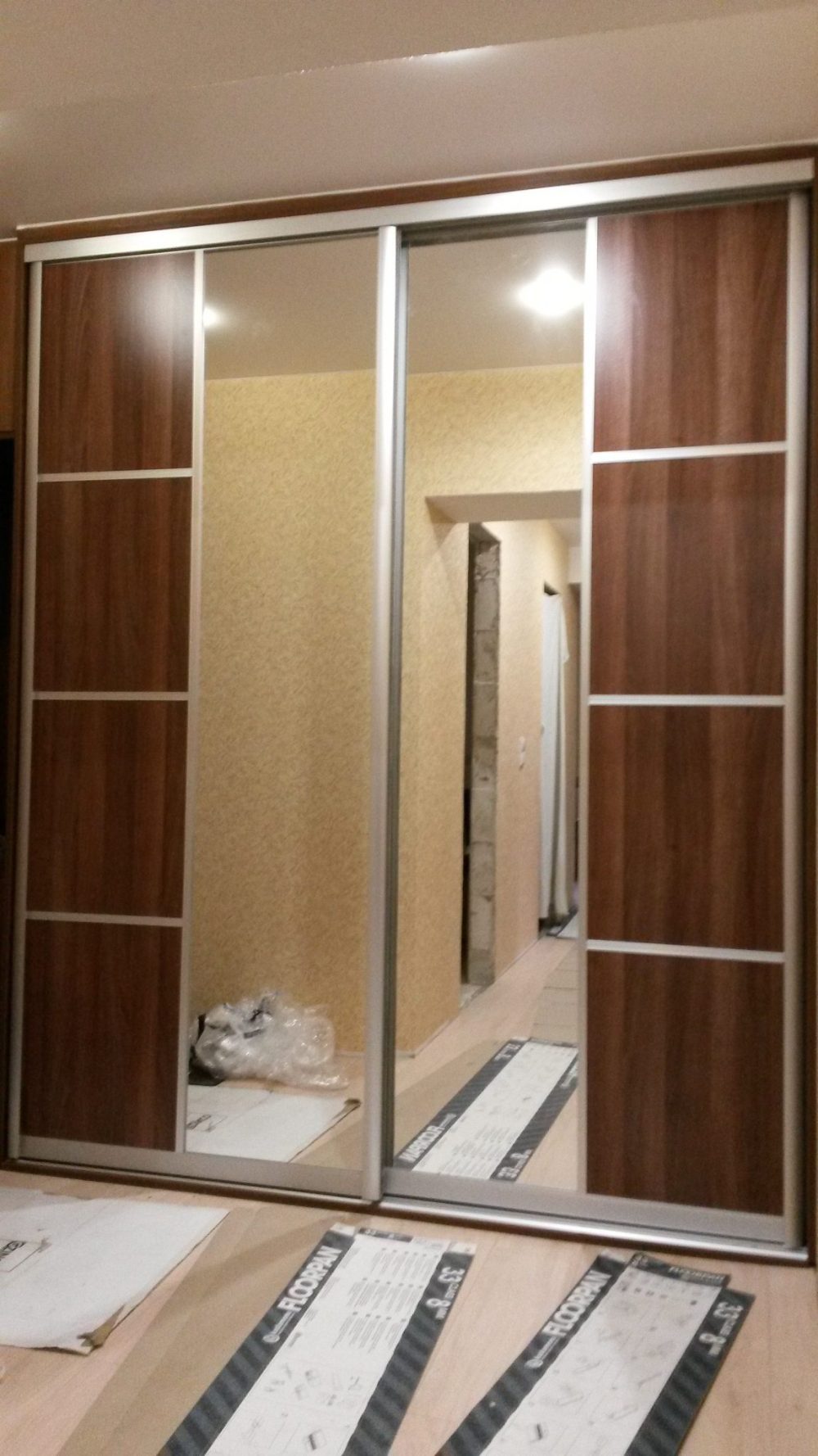 код 91268Две раздвижные зеркальные створки. Фасад с высокими зеркалами.