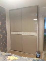 Встроенный трехдверный шкаф-купе со вставками лакобель