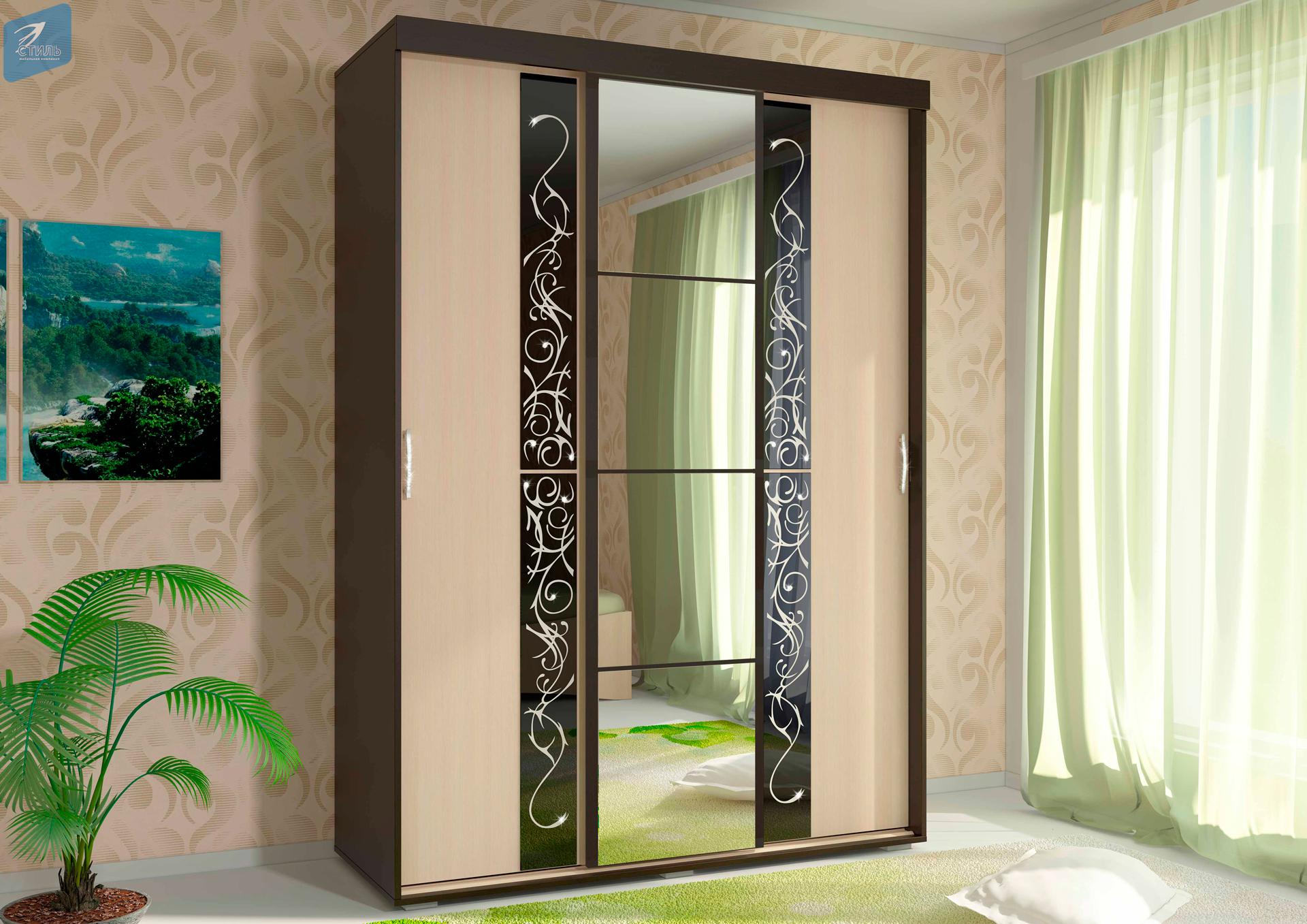 Фабричный шкаф-купе среднего размера. Три фасадных зеркала во весь рост.