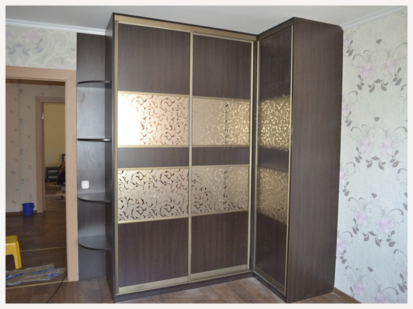 код 89424Угловая секция с закругленными полками. Профиль шампань в тон зеркальным вставкам.