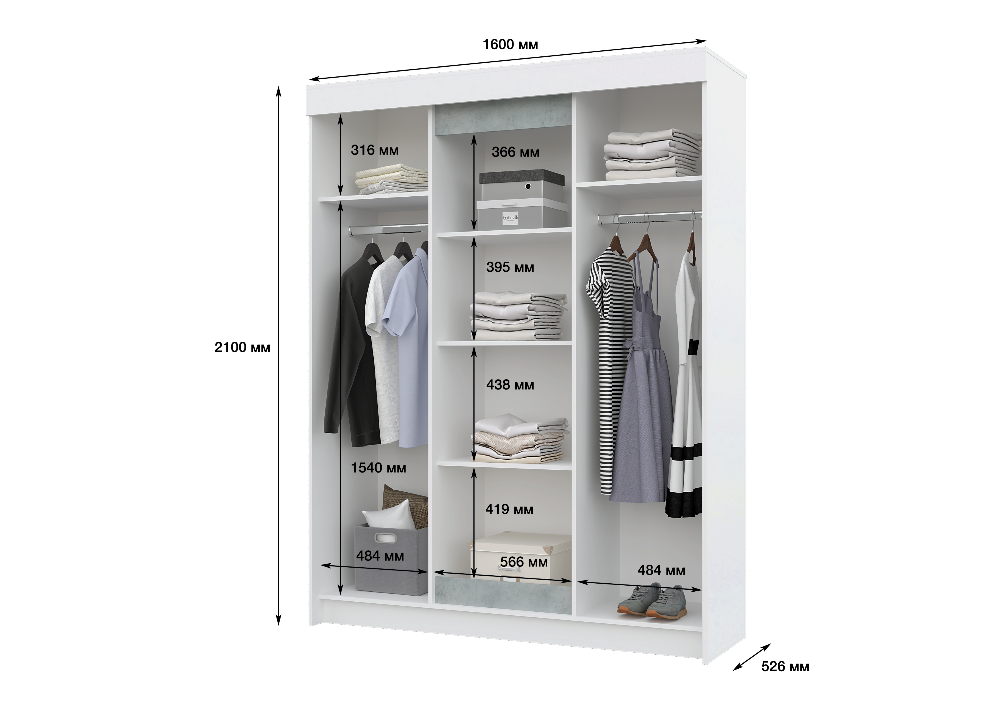Шкаф-купе «Виктор 1.6 м» (белый/белый, бетон)