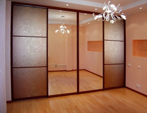 Широкий двустворчатый шкаф-купе в оригинальном дизайне.