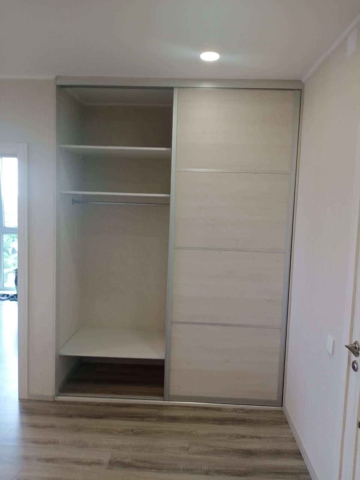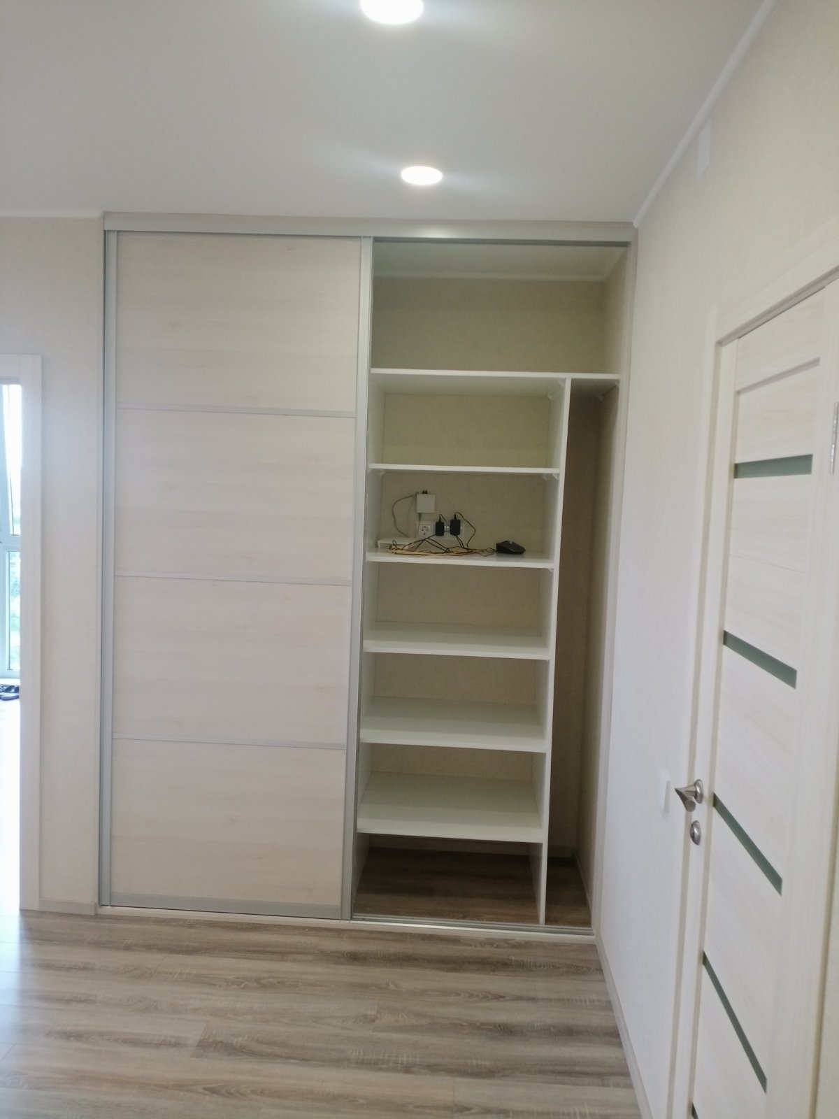 Универсальный шкаф-купе с полками справа. Ширина 152 см.