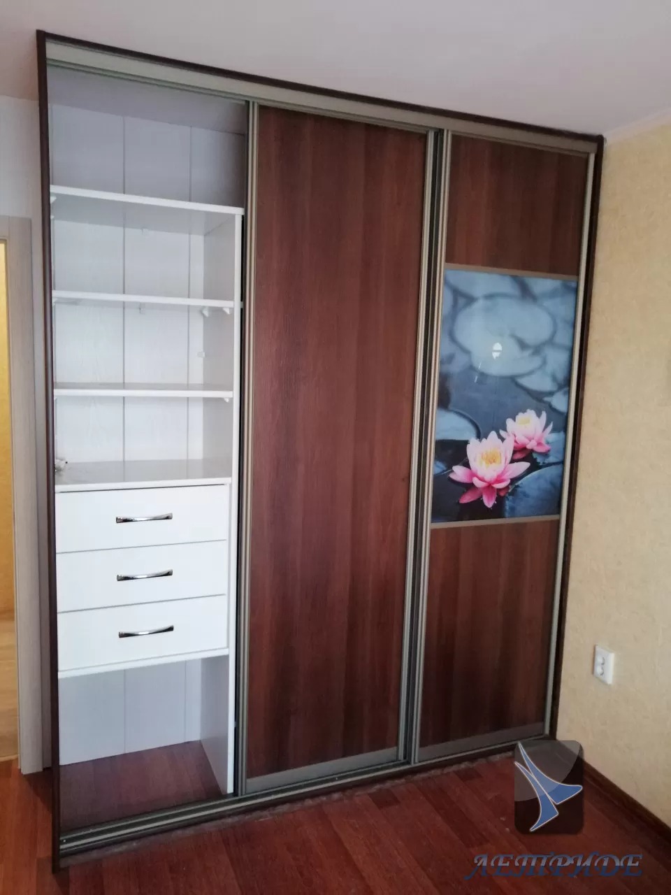 Готовый шкаф-купе без зеркал, 4 полки справа. Ширина 152 см.