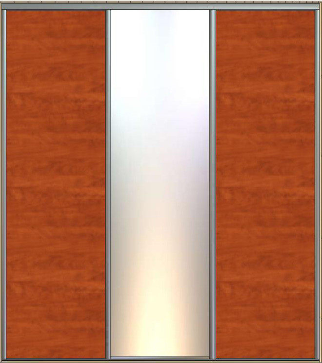 Боковые створки шкафа из ЛДСП, центральная створка с зеркальной вставкой во весь рост.