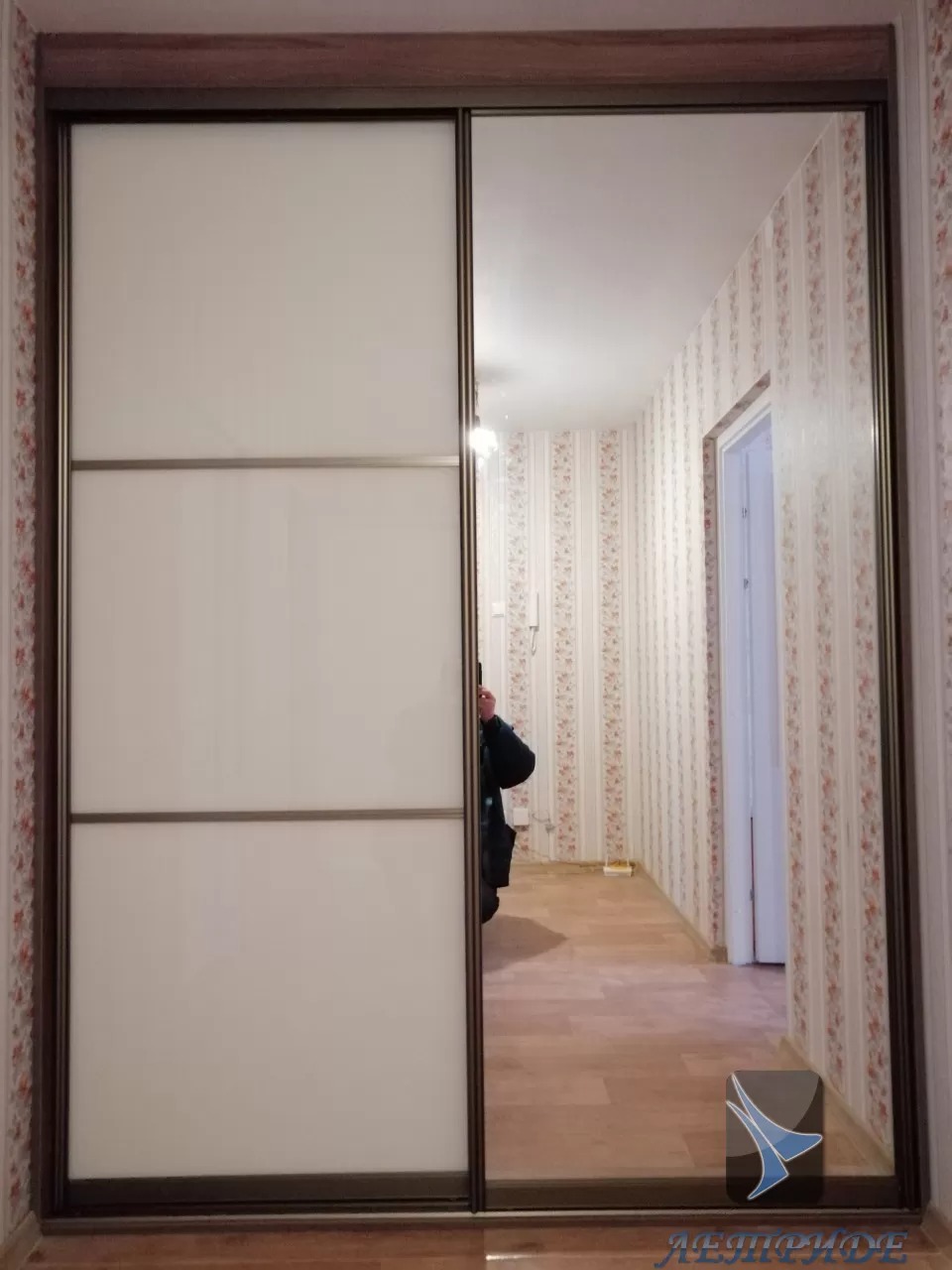 Шкаф-купе с боковыми стеклянными полками и подсветкой