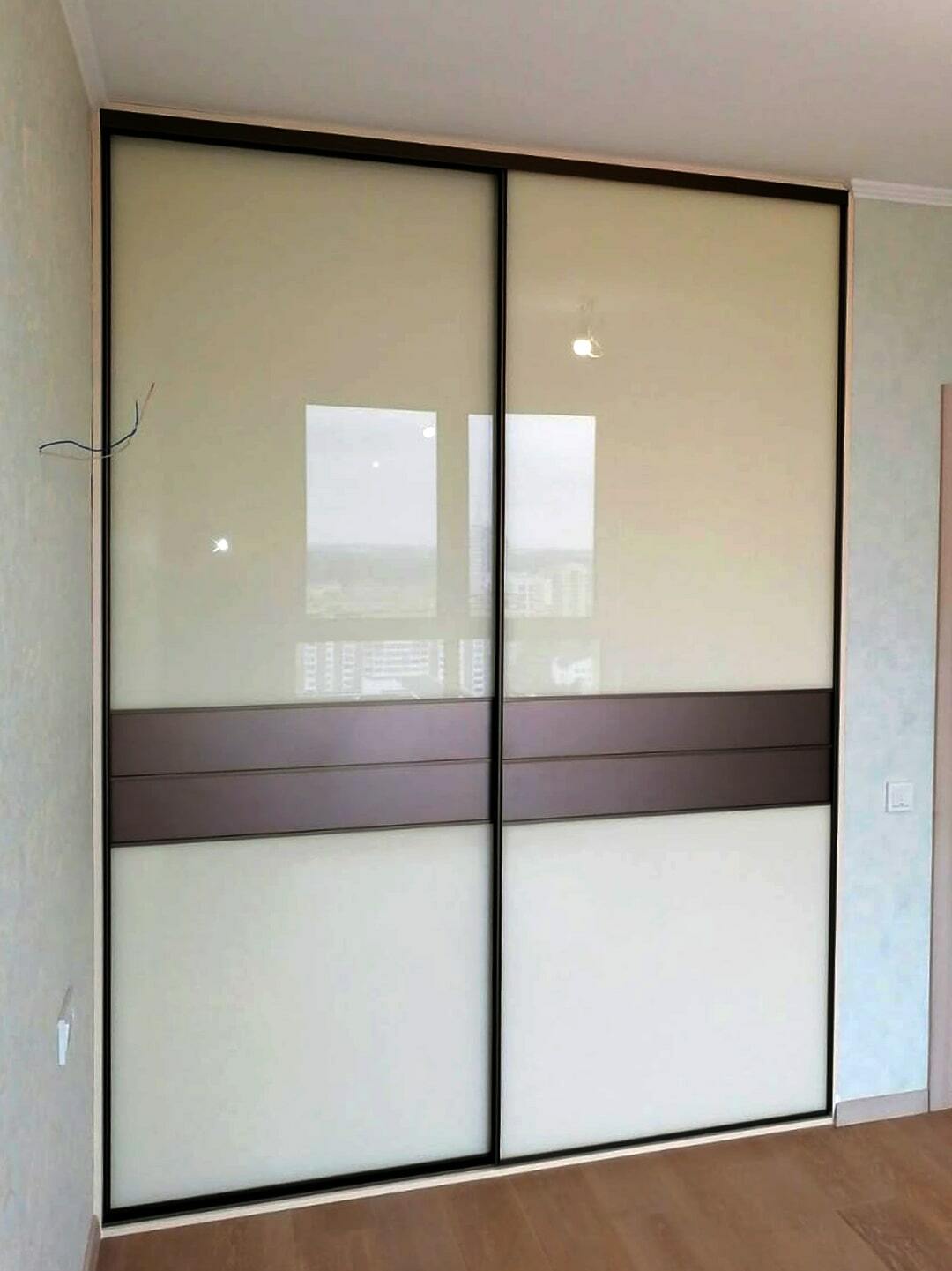 Фасады комбинированные: стекло лакобель глянец с зеркалом бронза матовым.