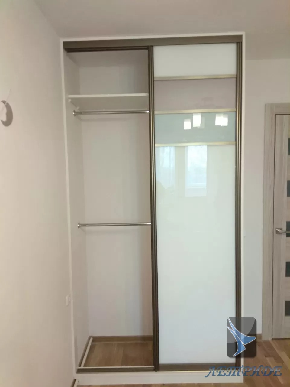 Цвет фасадов: белый. Остекление зеркалом серебро.