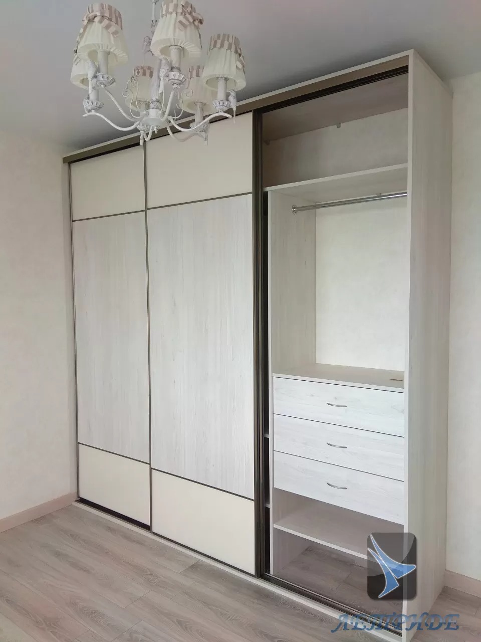 Шкаф-купе четырехдверный с угловыми полками