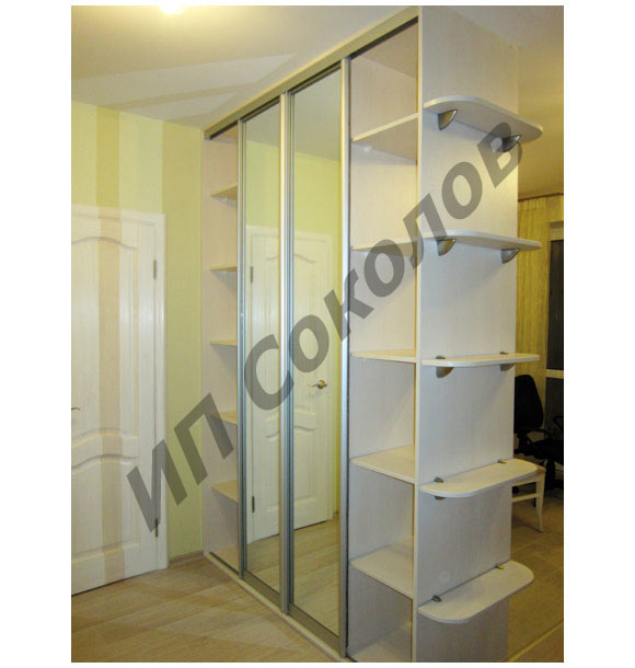 Шкаф-купе зеркальный с полками и светлым корпусом
