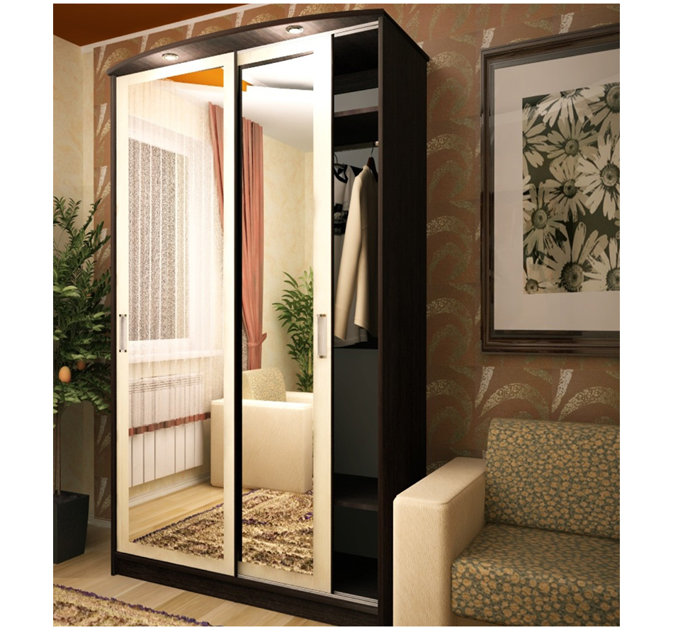 Малогабаритный шкаф-купе с фасадными зеркалами. Корпус из ЛДСП.