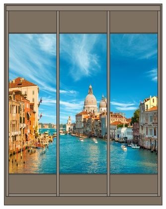 Трехдверный шкаф-купе на системе раздвижения Сенатор. Серебристый матовый профиль.