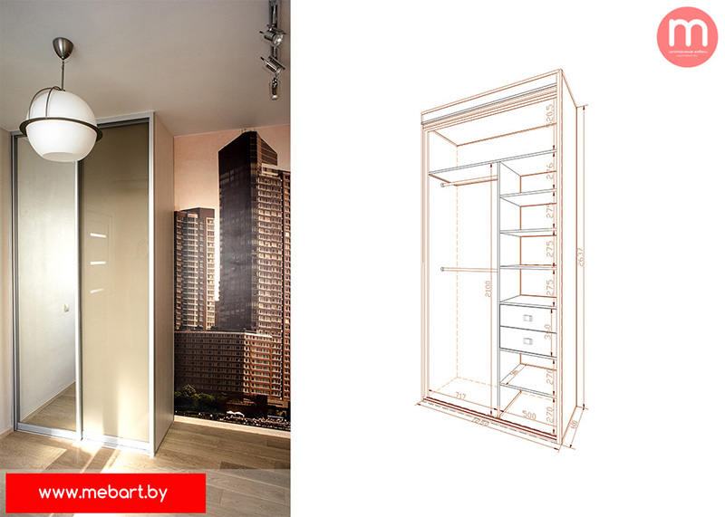 Современный шкаф-купе с зеркалом органично впишется в любой из интерьеров, отличаясь при этом удобством и хорошей вместительностью. Данная модель со светлым фасадом не только станет украшением любой комнаты в вашем доме, но и подарит много свободного места для хранения одежды, обуви, постельных принадлежностей.