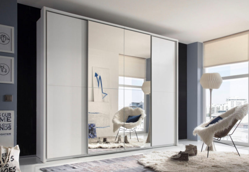 Шкаф-купе с зеркалом на фасаде удобен для хранения крупногабаритных вещей, одежды и обуви.