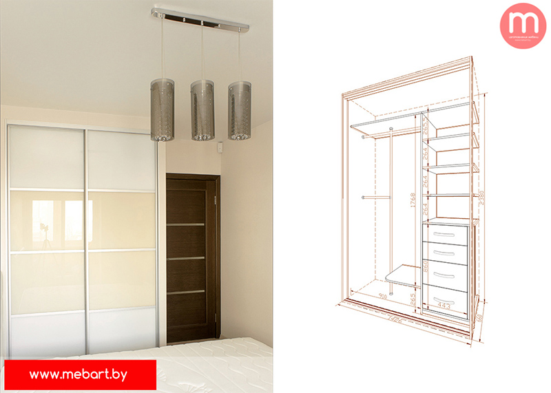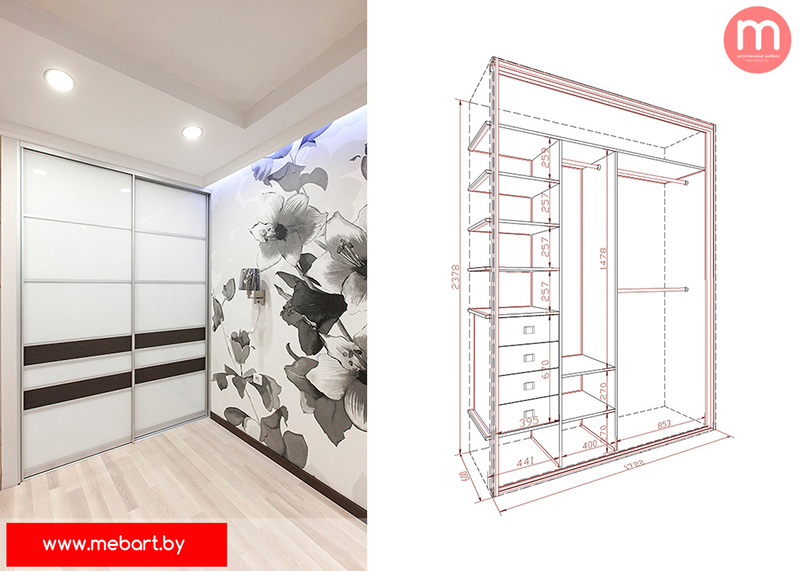 Размер: 1500x600x2100 мм. Материал: ЛДСП/Зеркало.