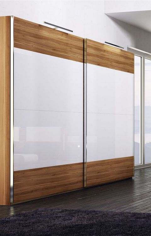 Стильный двухдверный шкаф-купе с белым глянцевым фасадом