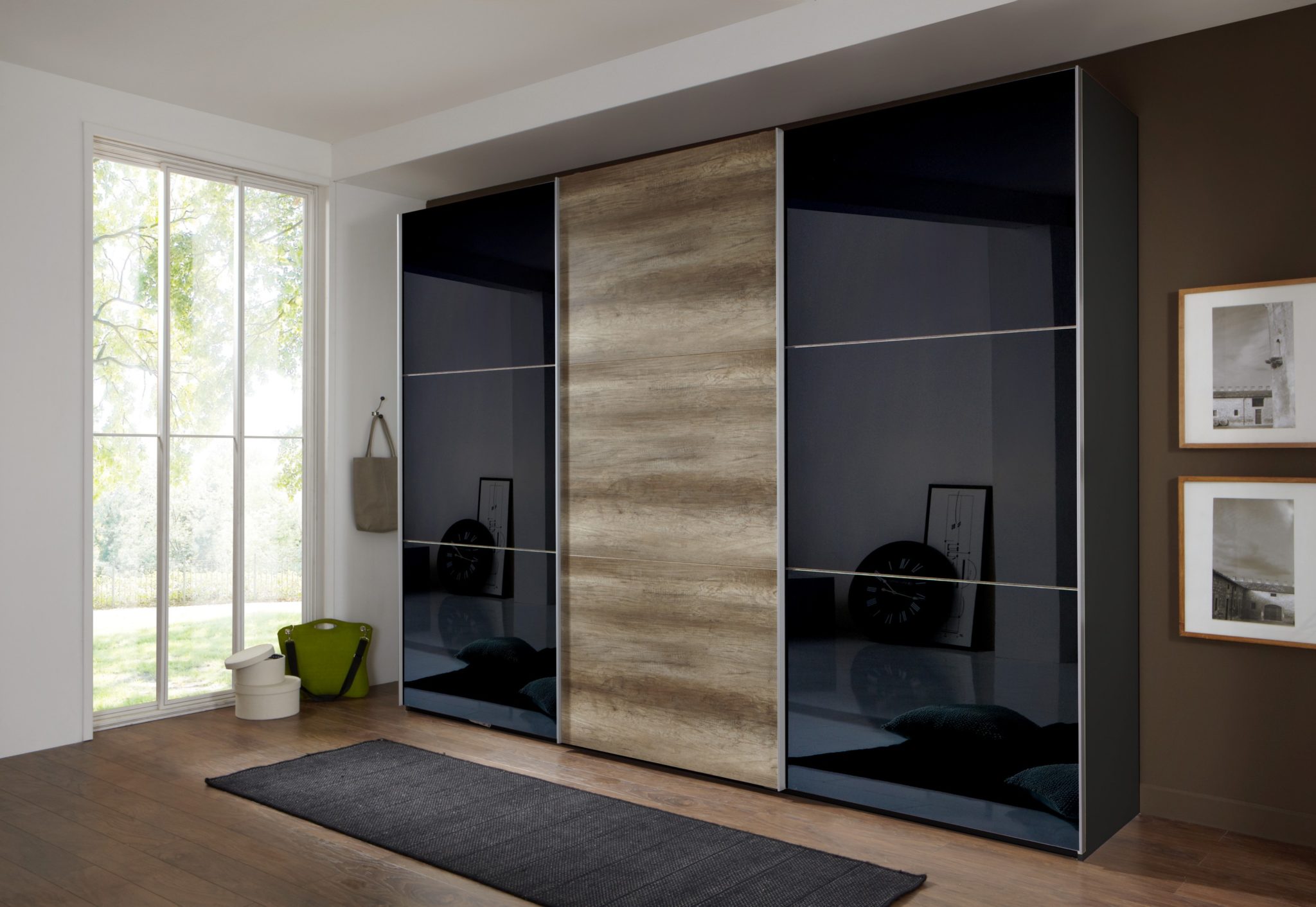 Шкаф-купе линейный с фасадом из стекла лакобель