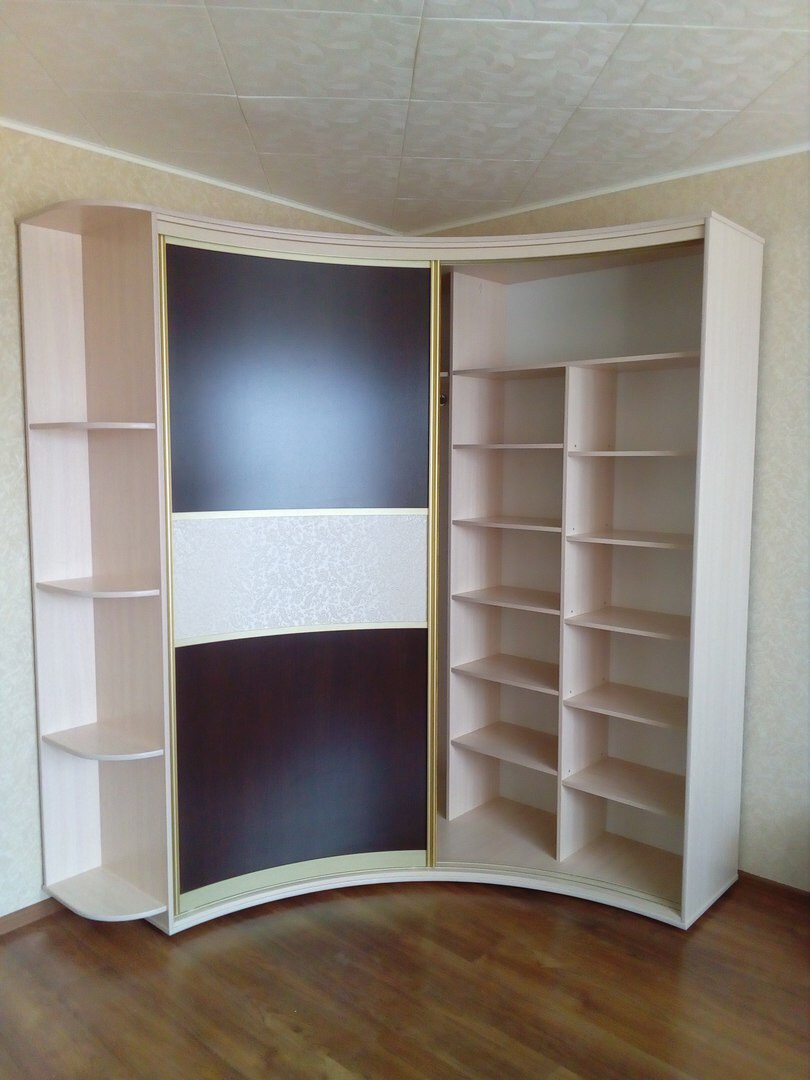 Фасад: стекло лакомат, зеркало. Радиусные полки.