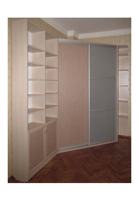 Светлый шкаф-купе с многочисленными полками