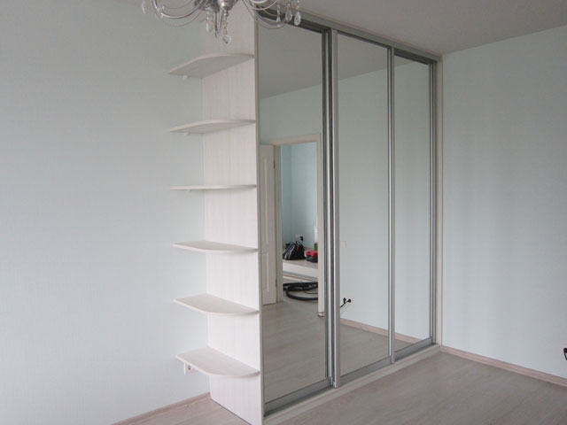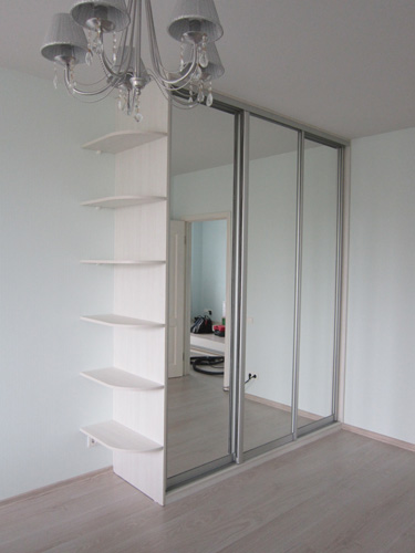 Светлый шкаф-купе с открытыми полками
