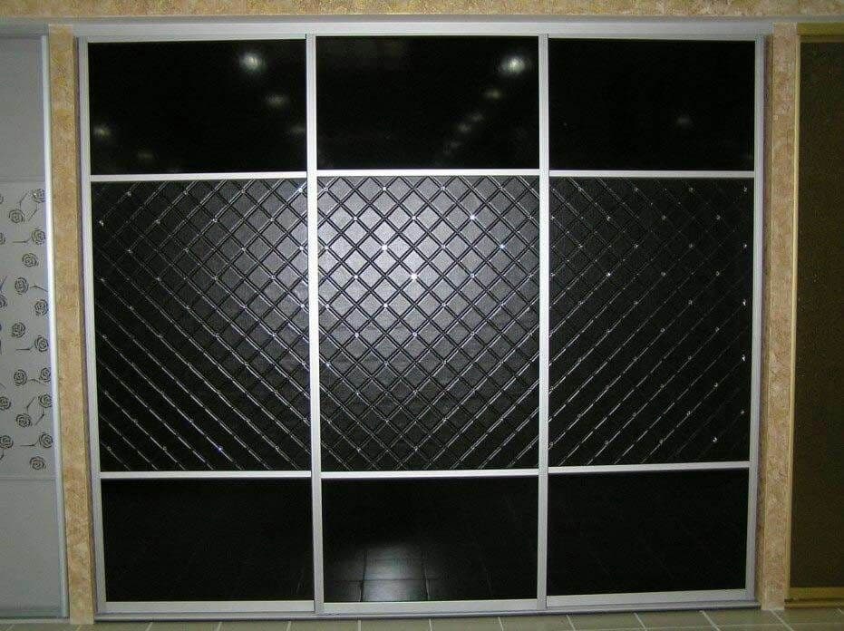 Трехдверный шкаф-купе с черными прямоугольными вставками