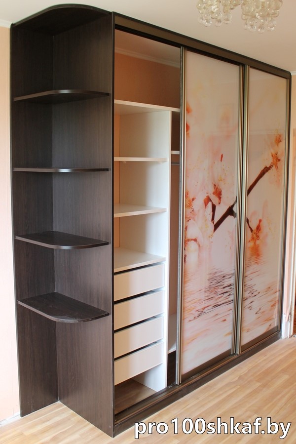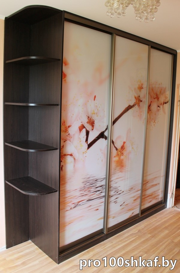 Трехдверный шкаф-купе с фотопечатью и полками