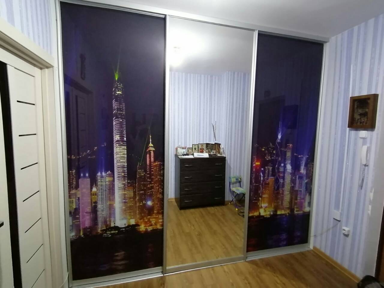 Трехдверный шкаф-купе с фотопечатью и зеркалом