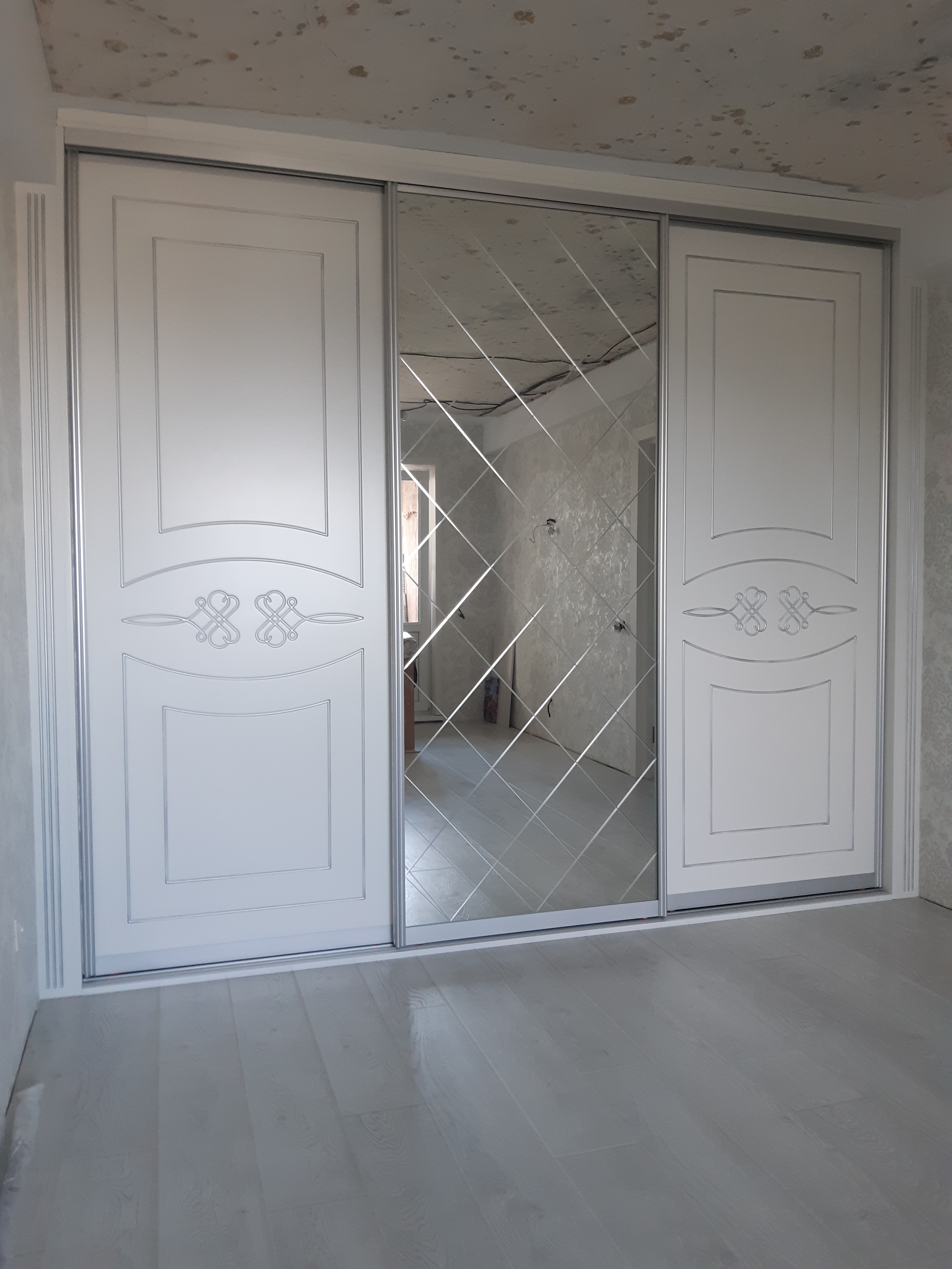 Трехдверный шкаф-купе в классическом стиле с зеркалом