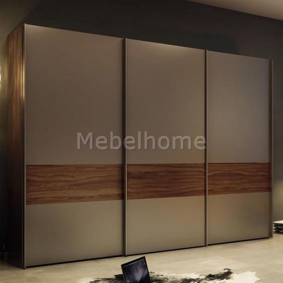Белый шкаф-купе с серебристым профилем. Три раздвижные створки на системе Senator.