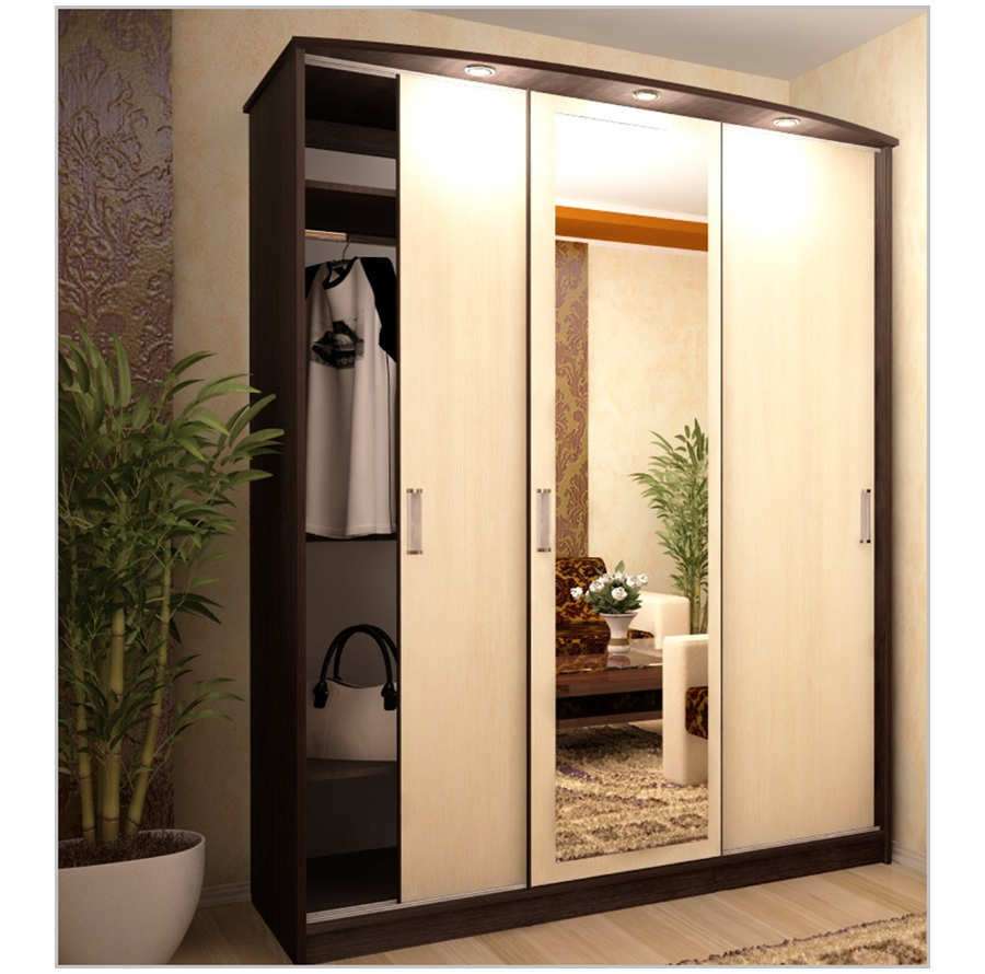 Просторный шкаф-купе позволит в комфорте хранить весь ваш гардероб. Центральная створка модели украшена зеркальной вставкой, которой по вашему желанию могут быть укомплектованы остальные двери. Для комфортной эксплуатации модель оснащена полукруглым карнизом со встроенной подсветкой. Шкаф без подсветки.