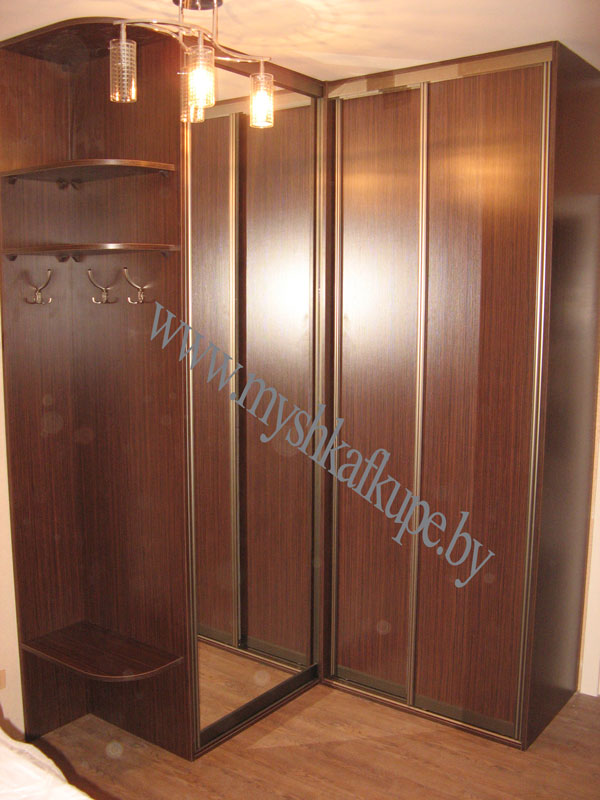 Угловой гардеробный шкаф-купе с торцевым сегментом