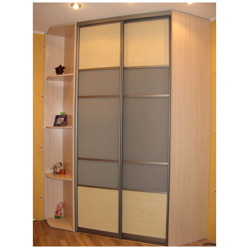 Шкаф-купе характеризуется угловой конструкцией – монтаж происходит непосредственно в угол комнаты. Фасады изделия выполнены в натуральных цветах.