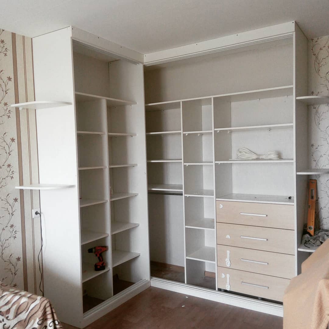 - угловое расположение шкафа позволяет эффективно использовать пространство в углу комнаты;