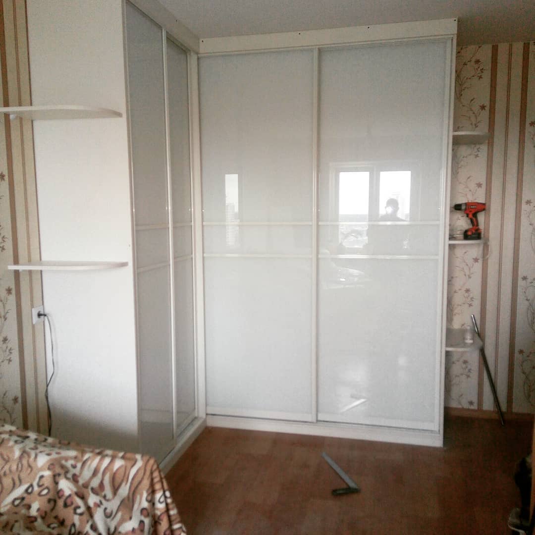 Угловой шкаф-купе с глянцевыми фасадами
