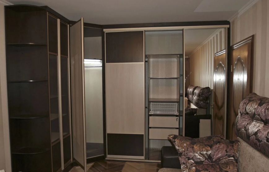 Средний шкаф-купе с дополнительными полками и зеркалом.