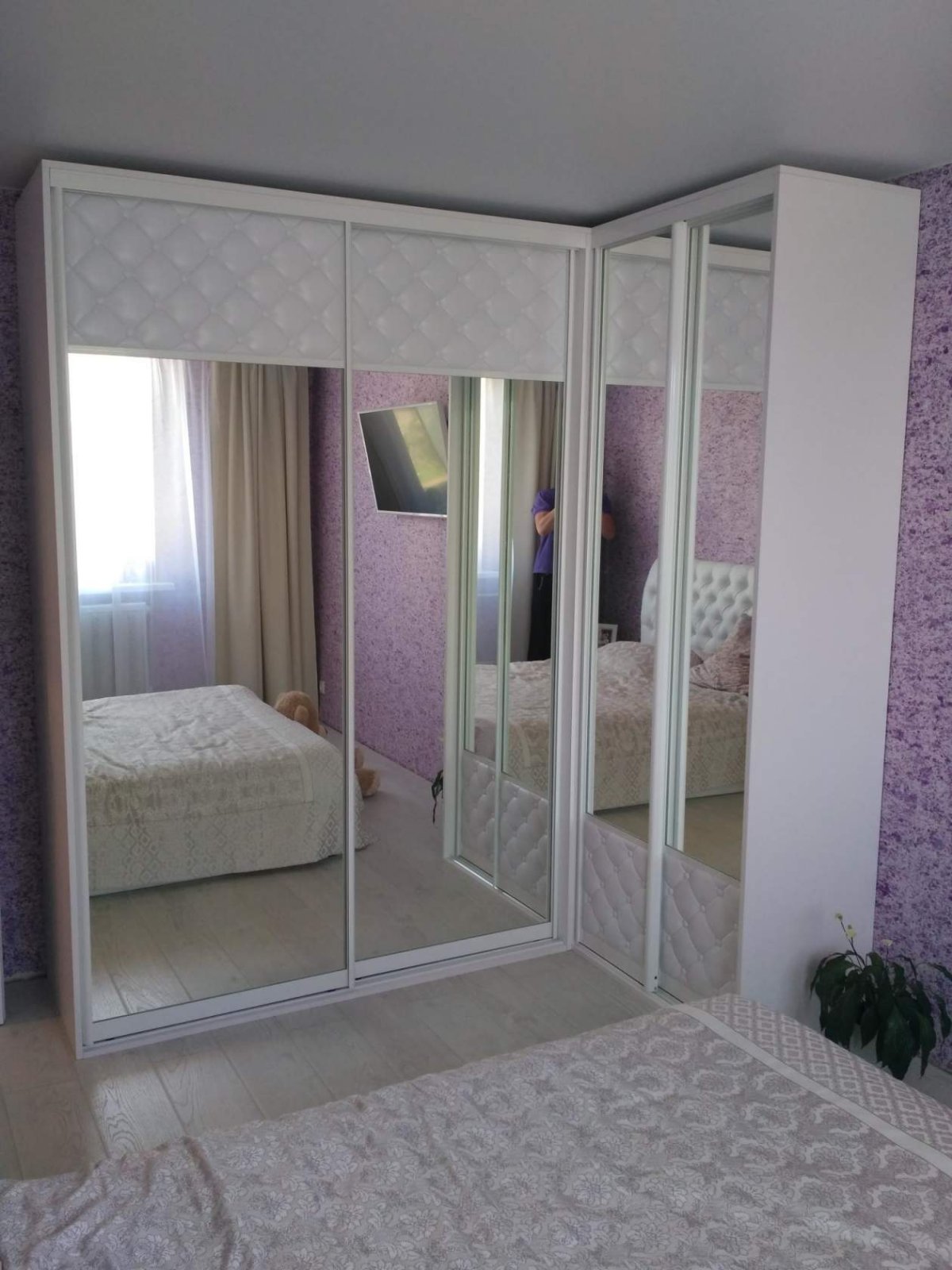 Угловой зеркальный шкаф-купе в спальню