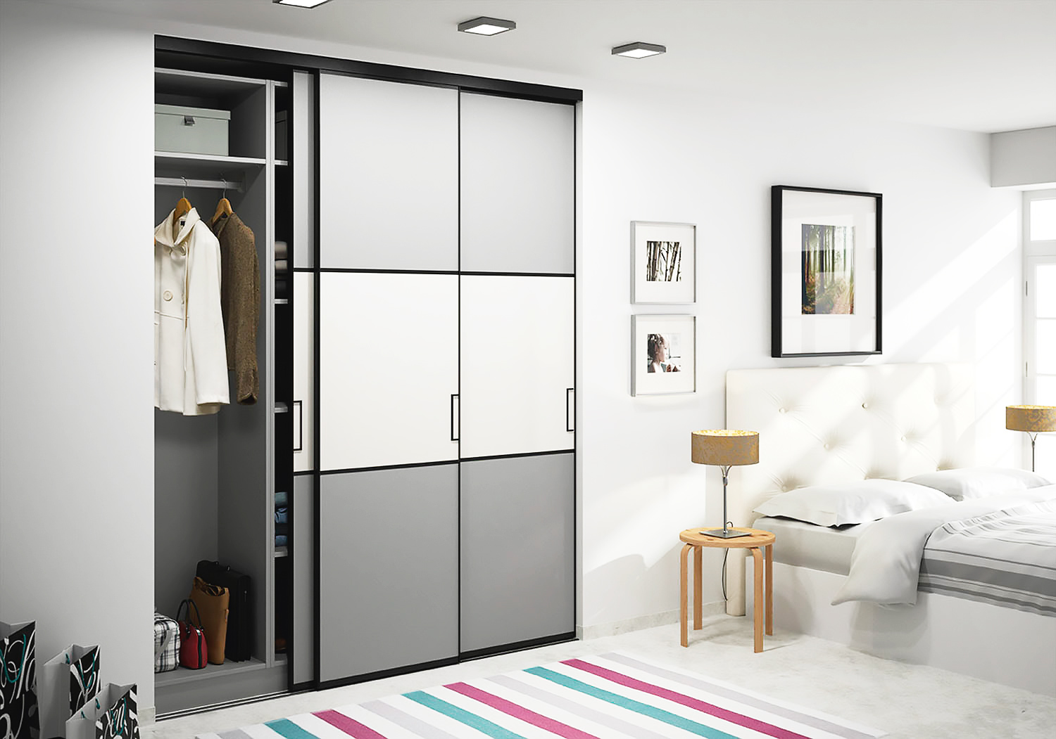 Встраиваемый шкаф-купе бело-серого цвета