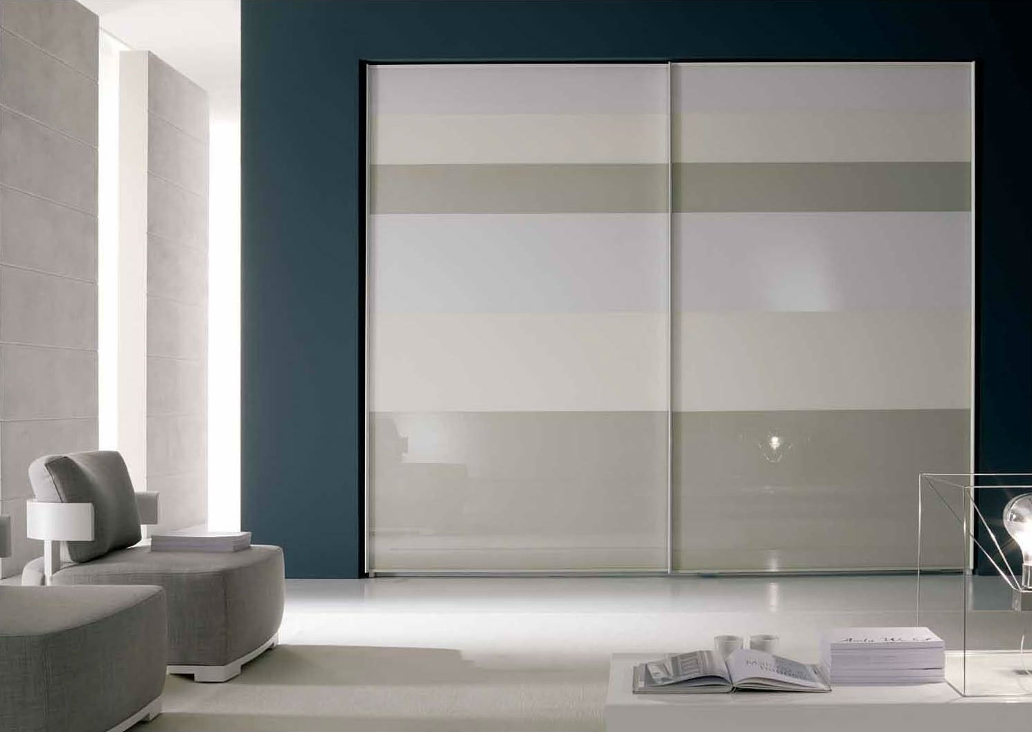 Две раздвижные створки. Матовый серебристый профиль из алюминия.