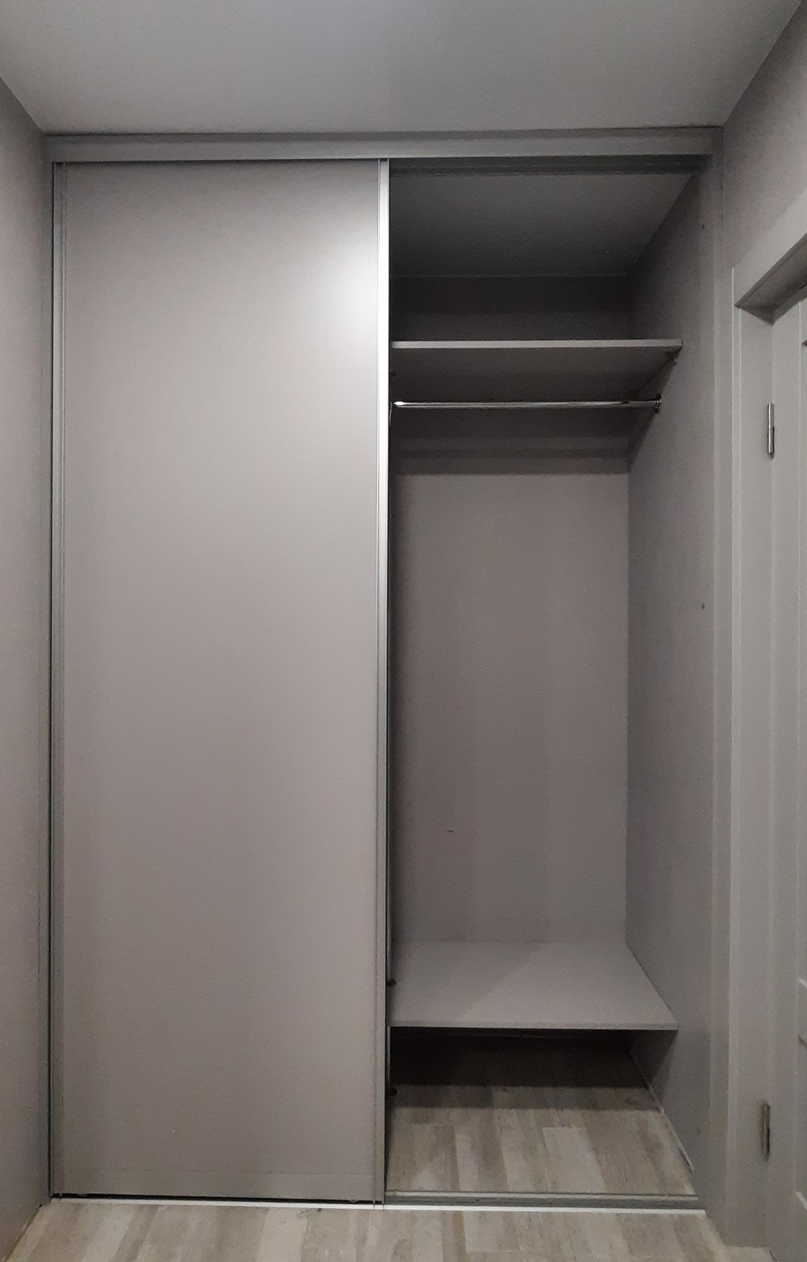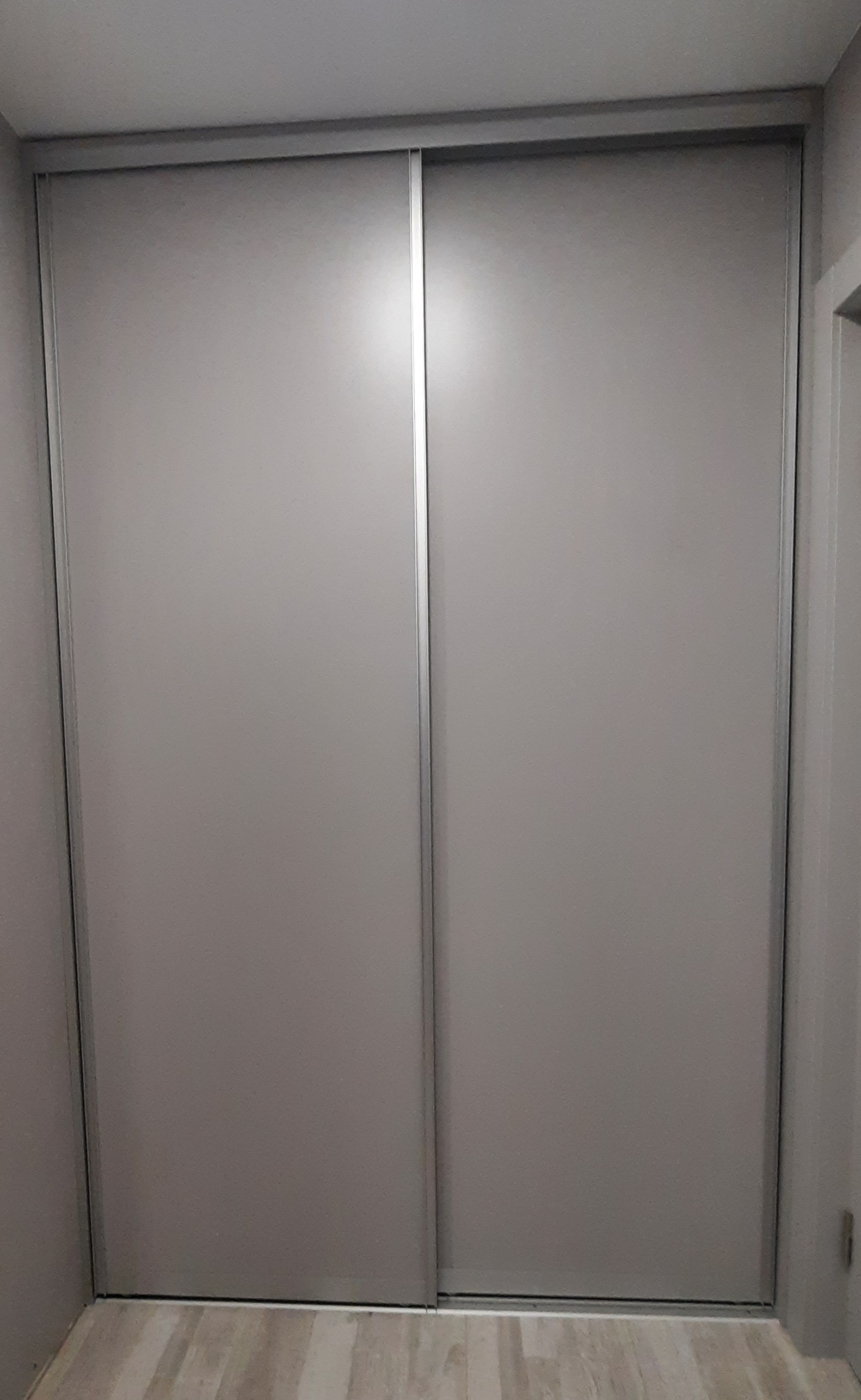 Двухдверный шкаф с раздвижными дверями «купе» на алюминиевом профиле.
