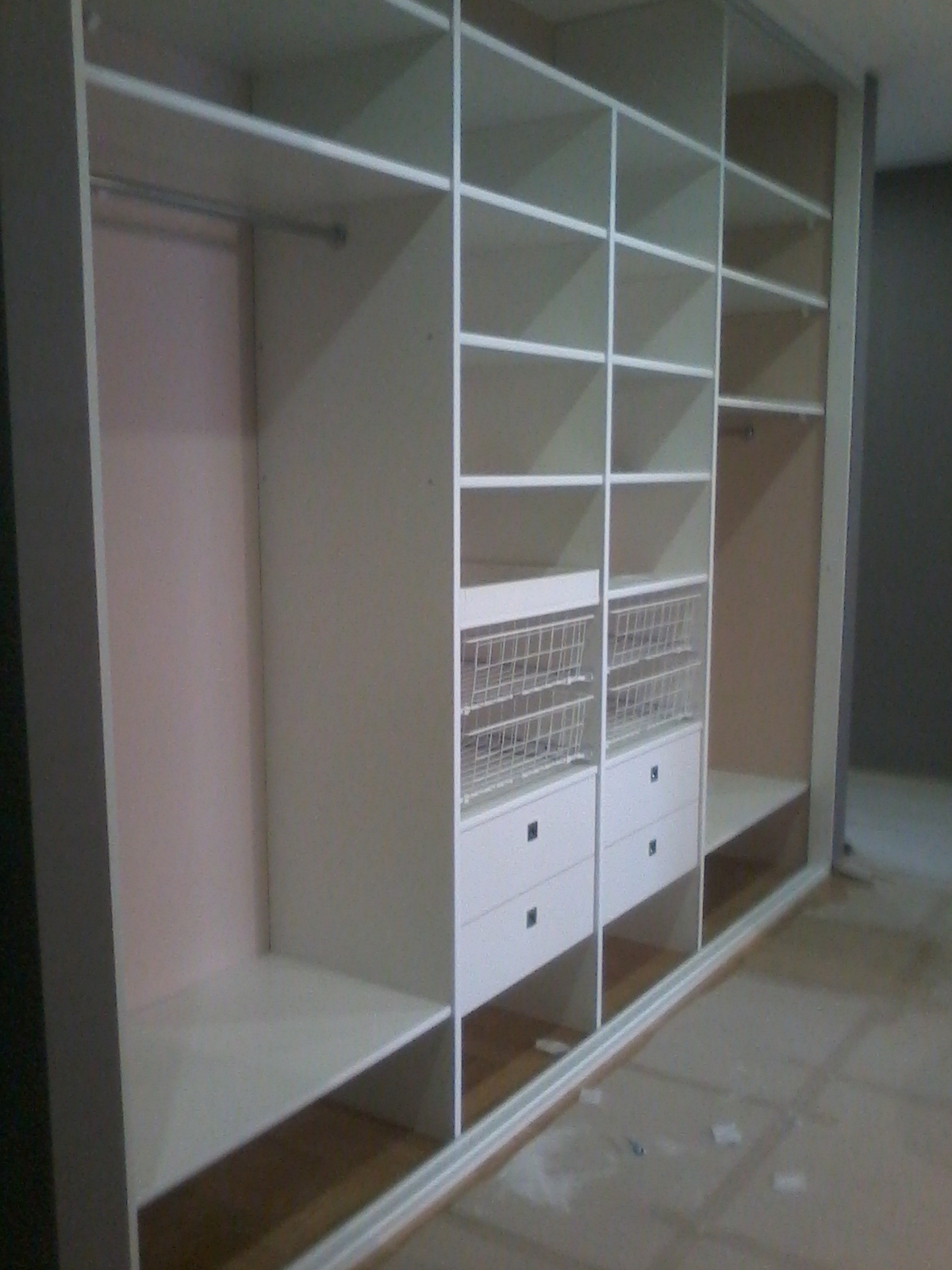 Трехдверный шкаф-купе с боковыми полками в прихожую