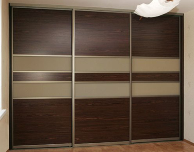 Трехдверный шкаф-купе с черными прямоугольными вставками