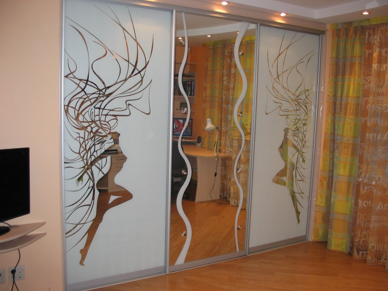 Встроенный шкаф-купе с креативным пескоструйным рисунком