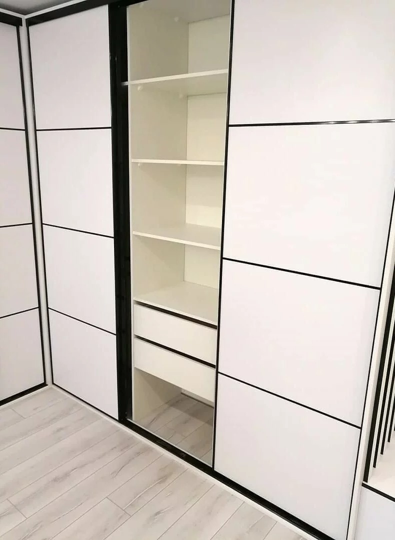 Шкаф-купе с зеркалом на двери. Система раздвижных дверей "Универсал" обеспечивает плавный ход дверей.