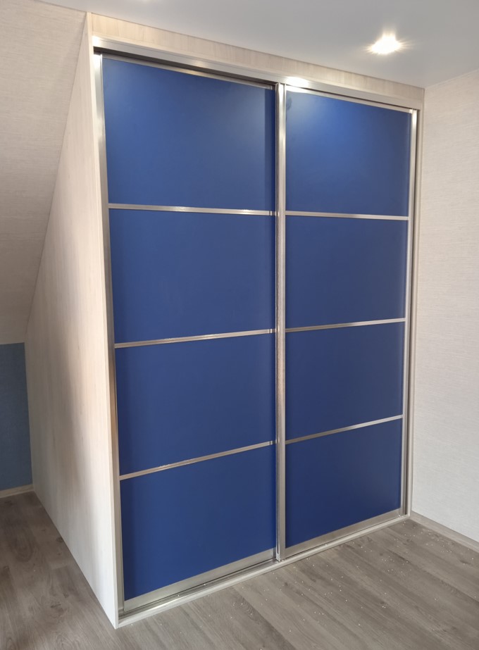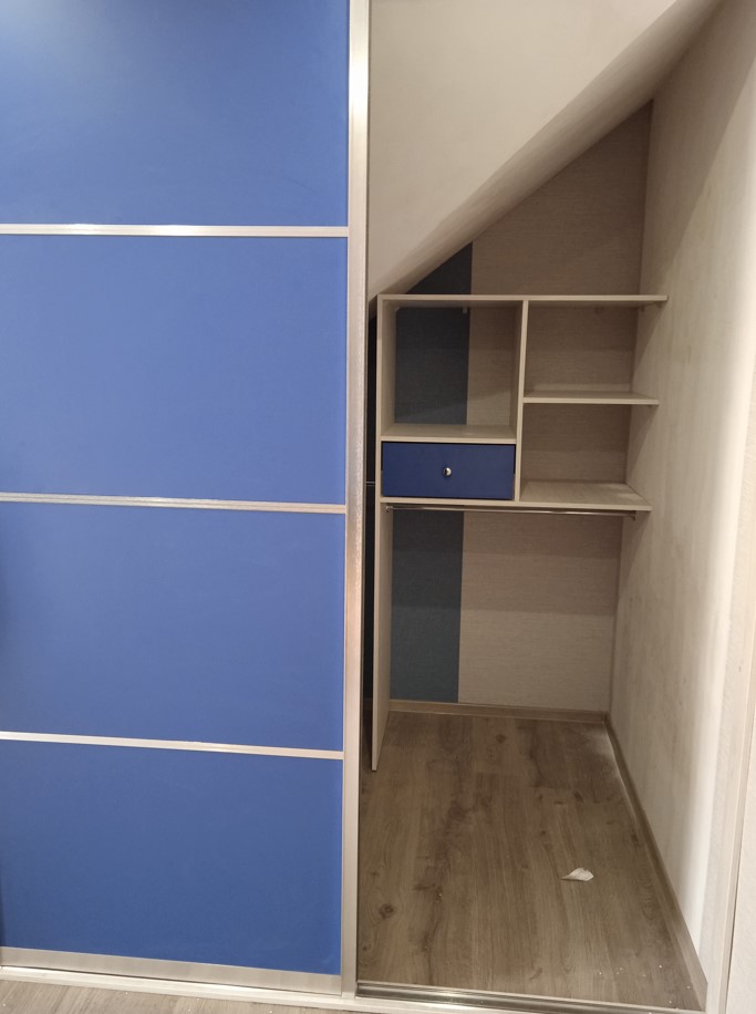 Встроенный шкаф-купе с синими фасадами
