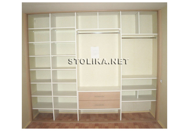 код 54198Объемный шкаф-купе. Два выдвижных ящика и многочисленные полки.