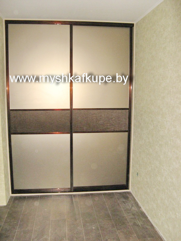 Две раздвижные створки. Матовый серебристый профиль из алюминия.